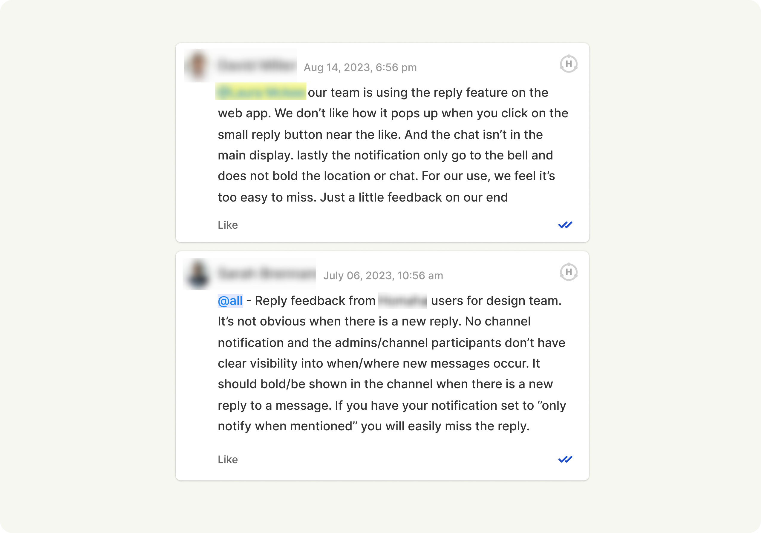 Users often lost messages and found it hard to follow threads, which frustrated them. Making sure messages stand out in the notification system is still a challenge.